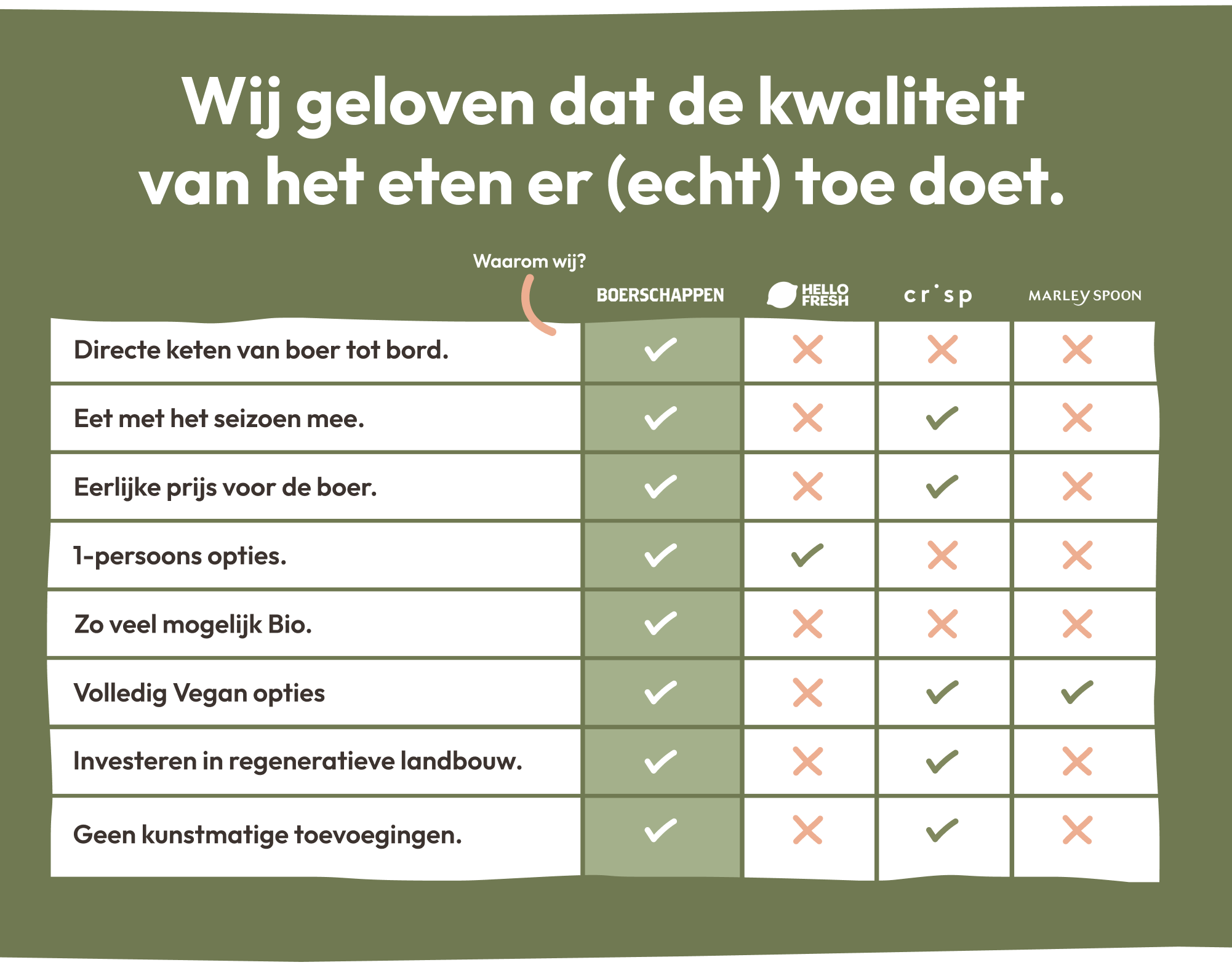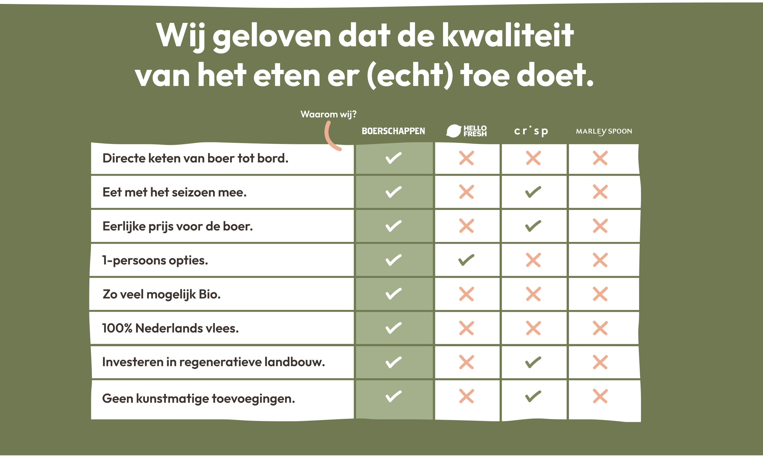 We kiezen bewust voor een korte keten. Minder schakels betekent versere producten, minder voedselverspilling en een eerlijke prijs voor de boer. Hierdoor weet jij precies waar je eten vandaan komt, en dat verschil proef je.